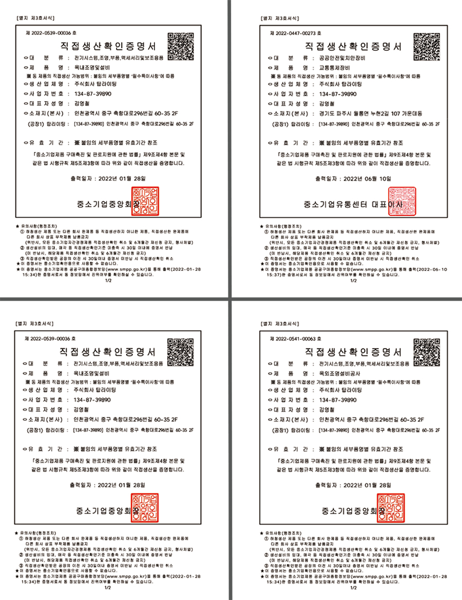 직접생산 증명서